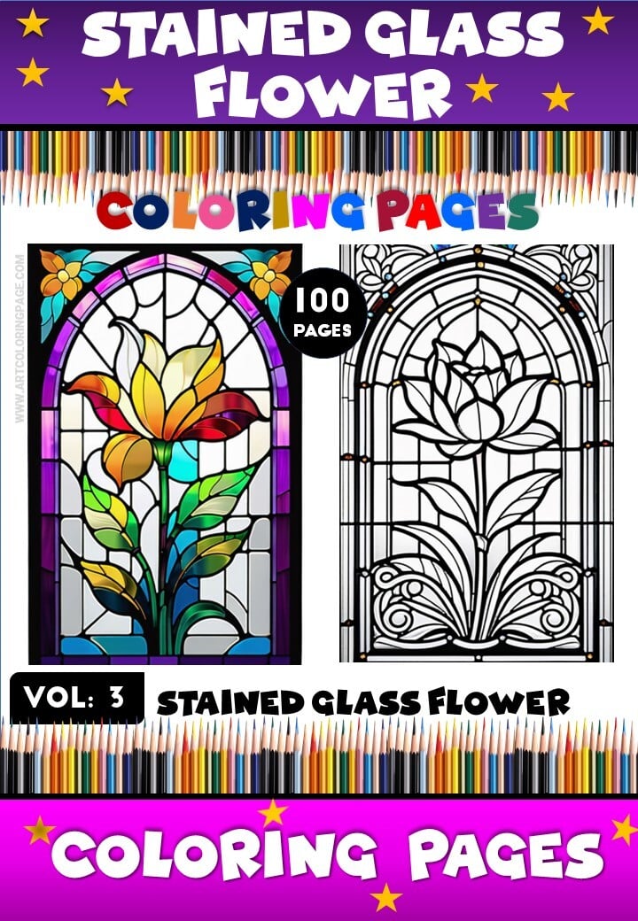 Don’t miss the chance to add a touch of elegance to your coloring collection with Window Glass Flower Coloring Vol - 3. Download your collection today and start your journey into the enchanting world of stained glass artistry!